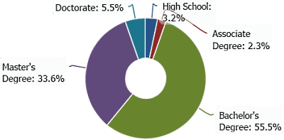 The most common education level was a Bachelor’s degree at 56%: