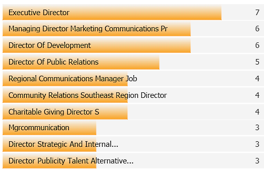 Below are the top 10 companies posting Director of Public Relations positions as open, during this time frame, and the number of jobs listed during this time period. Of course, there were many more companies but these are in our reporting database.*