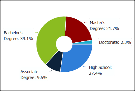 The most common education level is a Bachelor’s Degree at 39.1%.